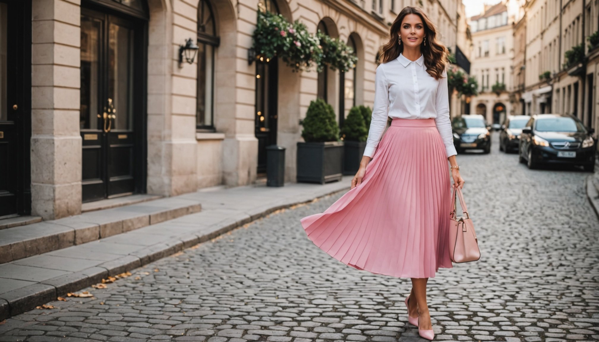 A pleated pink skirt brings a fresh, playful touch to any wardrobe. Its flattering silhouette and soft hue adapt[…]